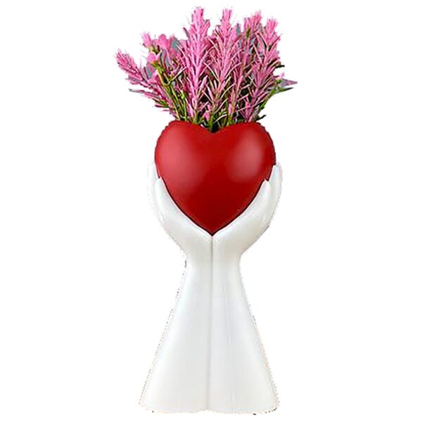 Διακοσμητική Γλάστρα σε Παλάμη με Άνθη Κόκκινη Καρδιά 27x10cm Homie 423048