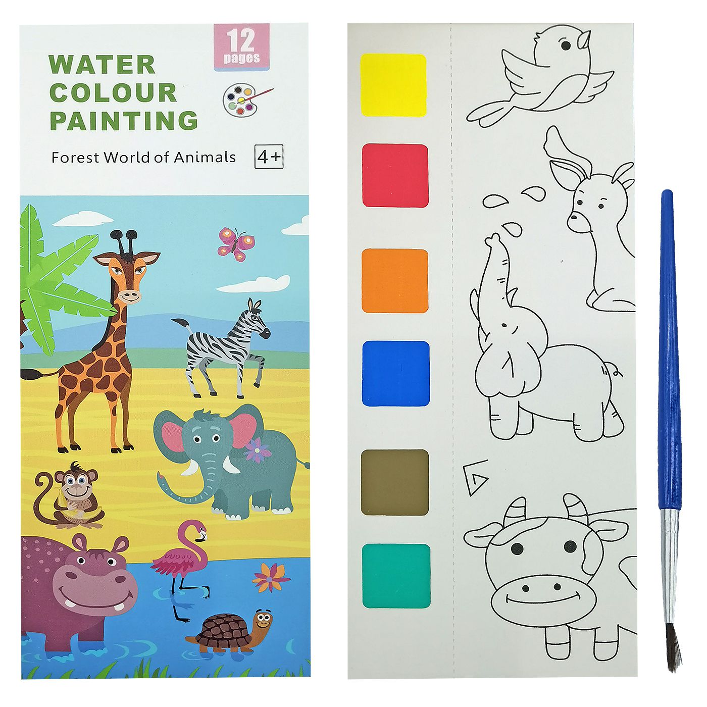 Σετ=μπλοκ 12 φύλλων χρωματισμού & πινέλο, κάθε φύλλο περιέχει νερομπογιές 19x8cm