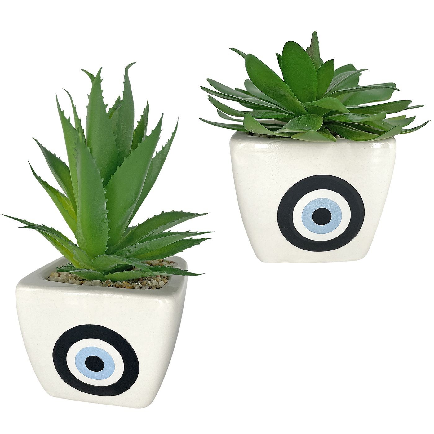 Γλάστρα Πορσελάνης Μάτι Άσπρη με Φυτό 14x8x8cm Homie 423041