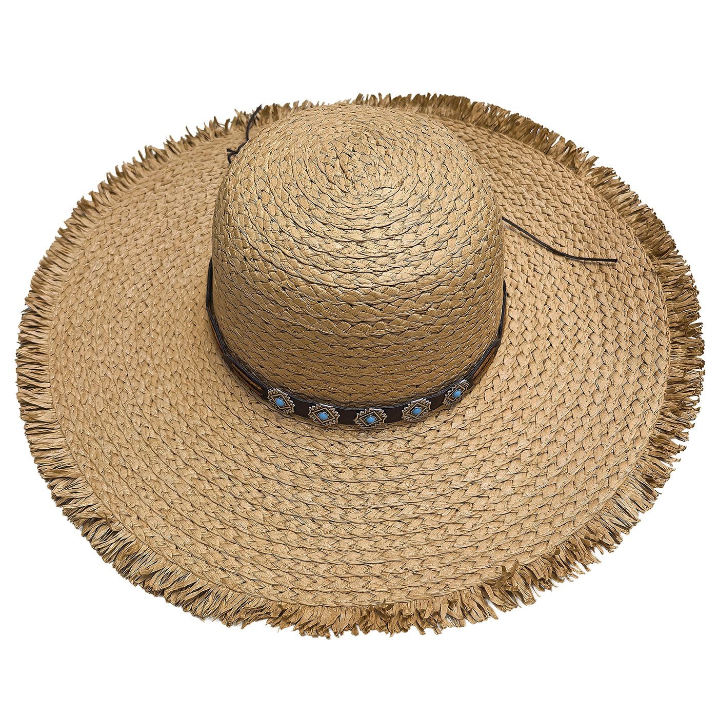 Καπέλο Ψαθόχαρτο με Κρόσια Δέρμα-Πετράδια ø42cm SummerTiempo 623351
