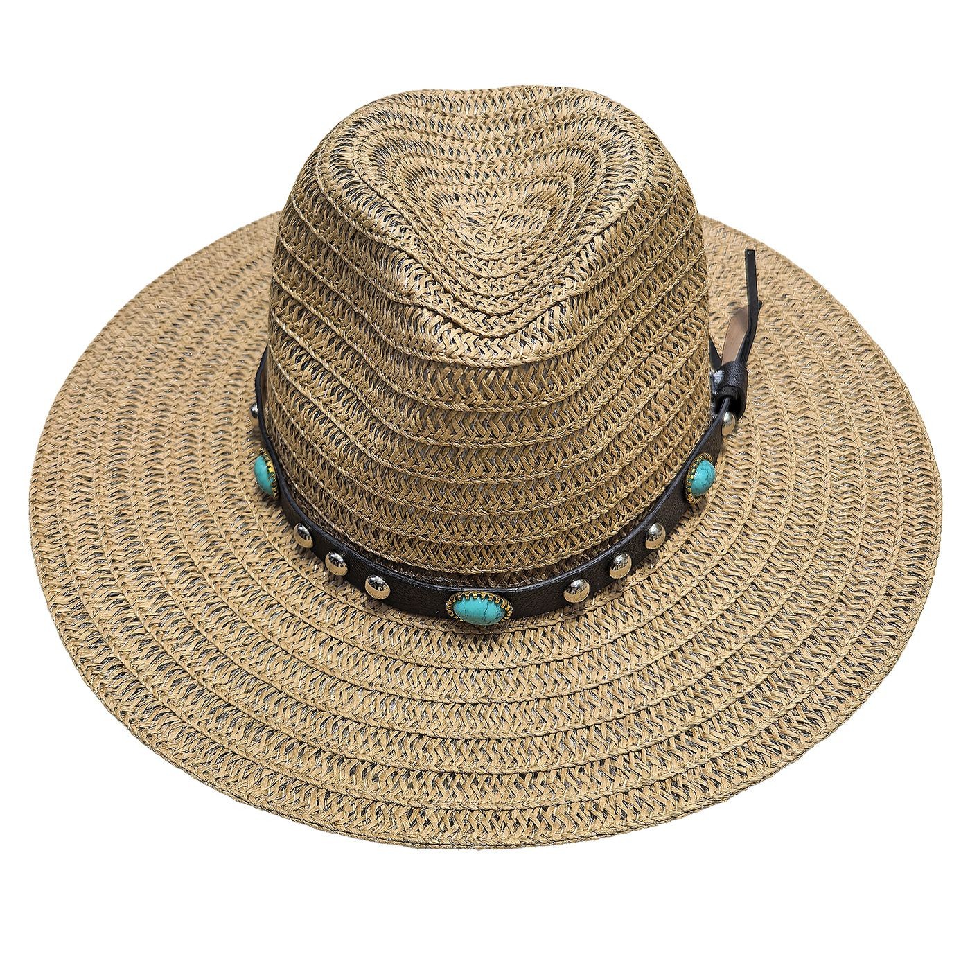 Καπέλο Ψαθόχαρτο Cowboy Δέρμα Τυρκουάζ Πέτρες ø36cm SummerTiempo 623347