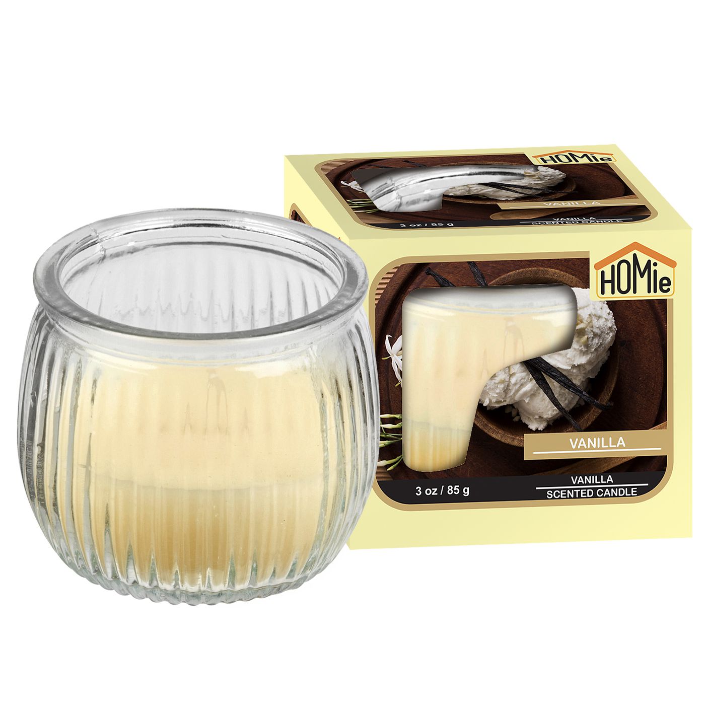 Κερί Βανίλια σε Βάζο 21h 85gr Net, 7×6,5cm Homie 57468