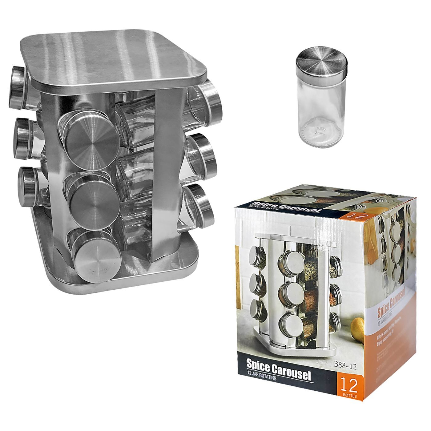Μπαχαριέρα με 12 βάζα. Περιστρεφόμενη ανοξείδωτη Βάζα:9,5×4,5cm, βάση: 22x16x16cm