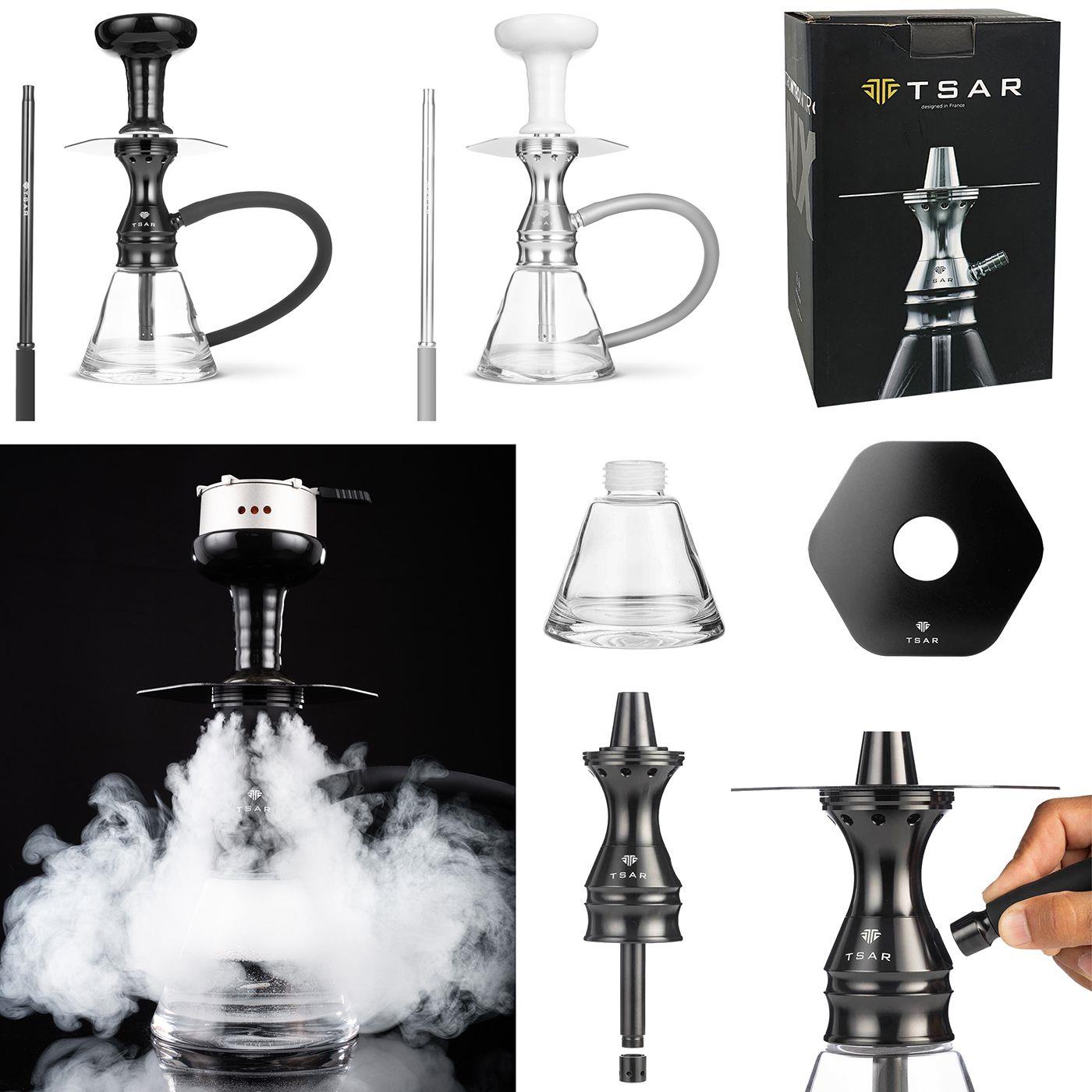 Ναργιλές. Μάρκα: Tsar Nitro Nx hookah, γαλλικό προϊόν. } Βάση:χειροποίητο γυαλί borosilicate υψηλής ποιότητας. Εξαρτήματα & επιστόμιο:υψηλής ποιότητας σκληρό αλουμίνιο. Λάστιχο:σιλικόνη. Δυνατότητα χρήσης 2 λάστιχων. Κεφαλή (bowl):κεραμικό 33cm