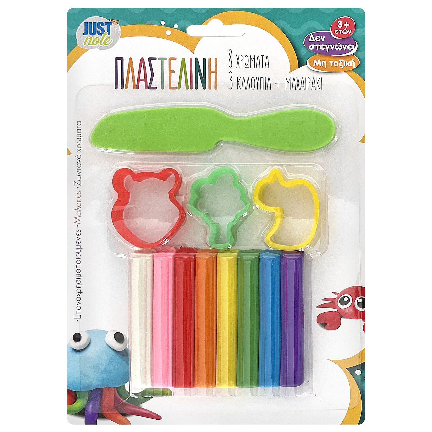 Πλαστελίνη & 3 Καλούπια σετ=8χρωμ. 100g net JustNote 70900