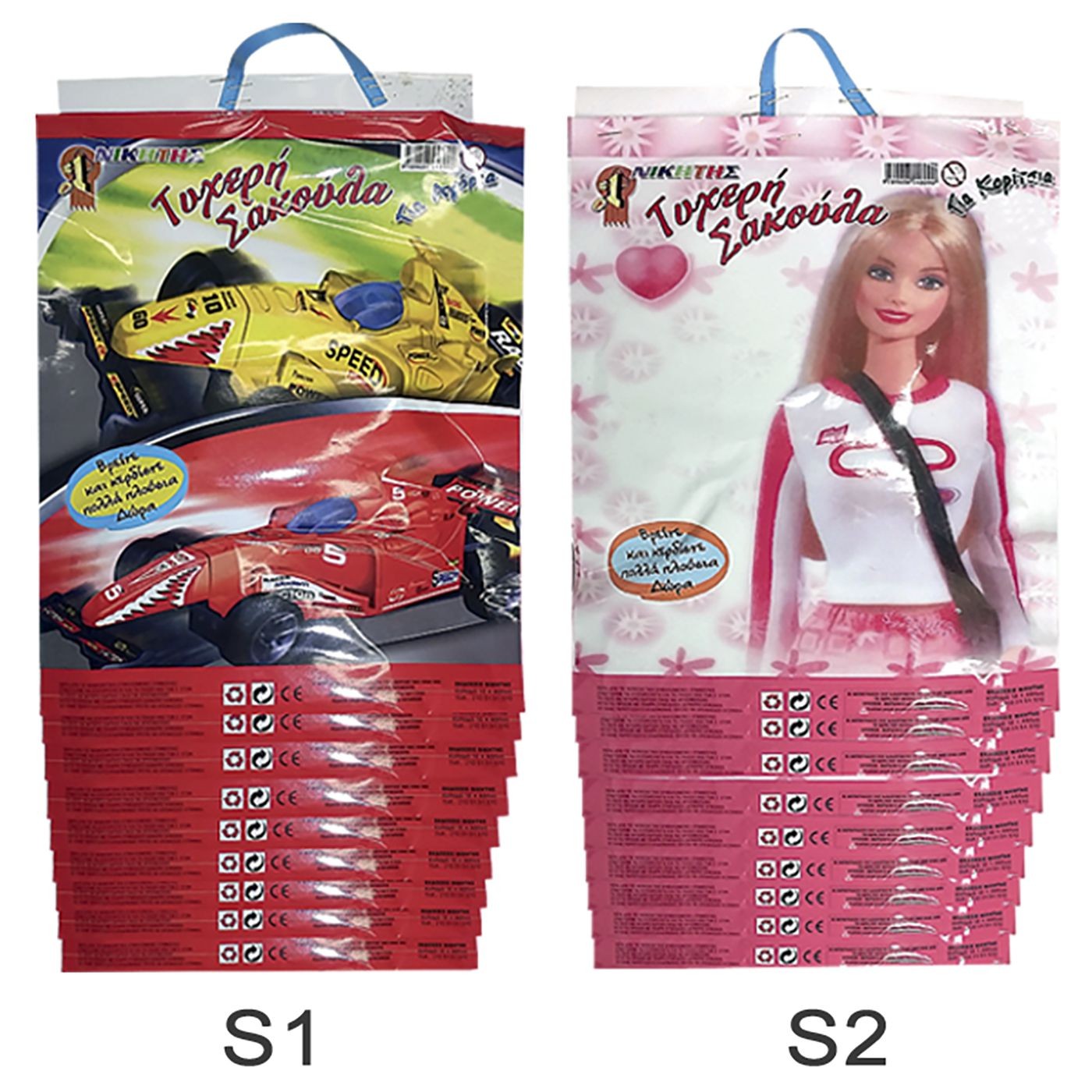 Τυχερή σακούλα (ανά 6αδα για αγόρι ή κορίτσι) των 5€, S1=τυχαίο αγορίστικο σχέδιο, S2=τυχαίο κοριτσίστικο σχέδιο