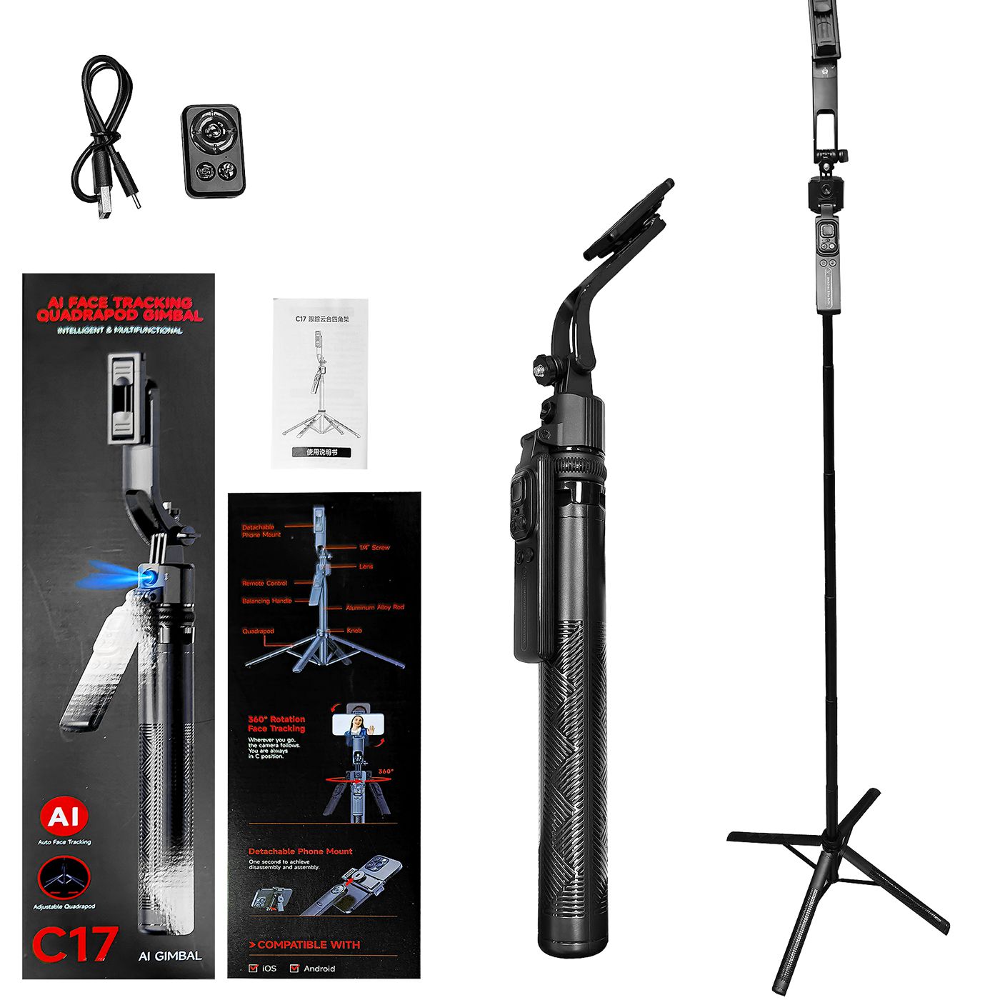 Ράβδος smart selfie με τηλεχειρισμό bluetooth • Με AI 360° face tracking (σε ακολουθεί) 165cm